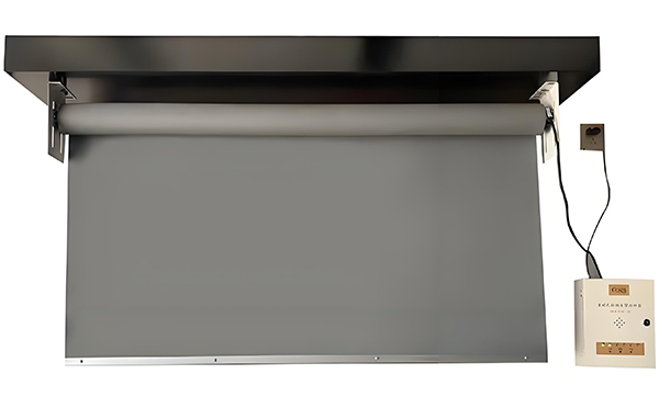 连接电源线和控制线,将都兰挡烟垂壁安装在支架上,并用螺丝固定。